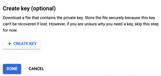 In GCP, paste the name into the Service Account Name and Service Account ID fields. Click Create.