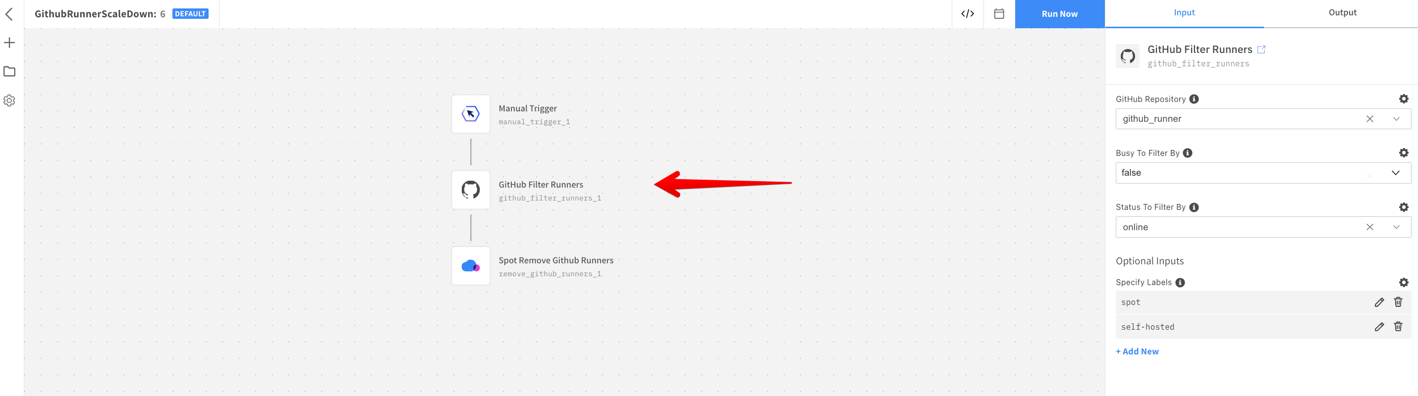 falseand the Status filter is set asonline. - Match the Specify labels in the GitHub Filter Runners with the workflow jobs and the user data. In this guide, the Workflow Jobs use the custom spot label and the inbuilt
