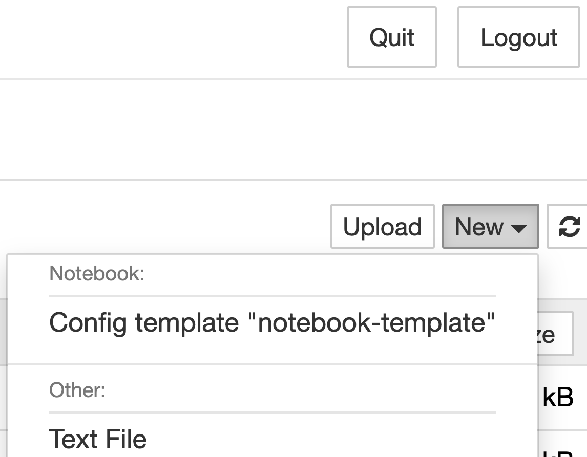 The Configuration Template “notebook-template” appears in the list of kernels in the Jupyter dashboard: