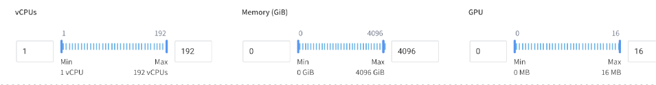 - Max Memory GiB: Maximum size of Memory (GiB).
